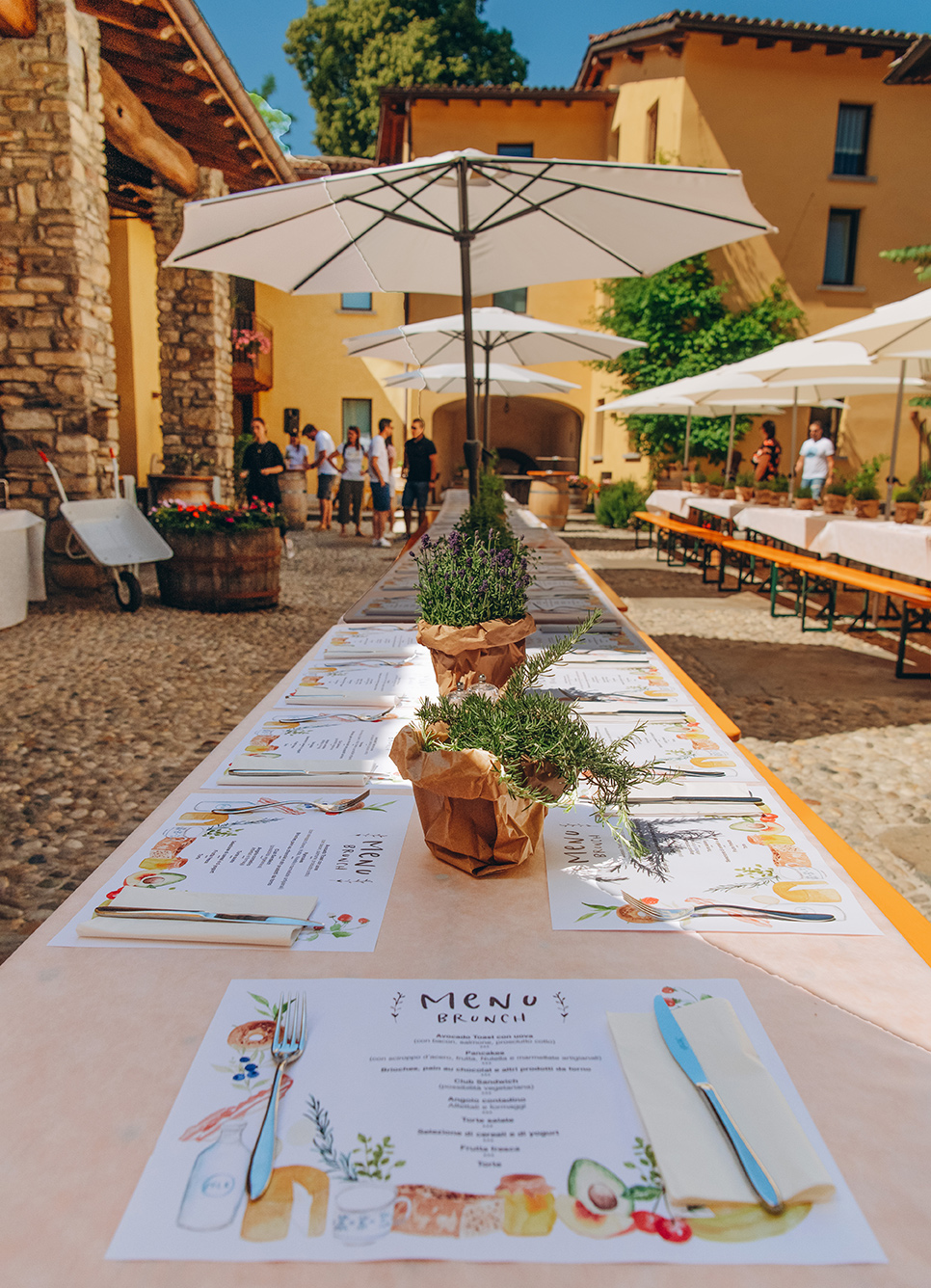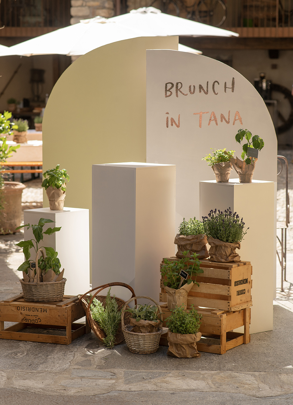 Il progetto per il brunch alla Tana di Rancate è nato con l’obiettivo di trasformare un momento conviviale in un’esperienza sensoriale completa, dove il design grafico e l’allestimento floreale si fondono armoniosamente con l’ambiente circostante. Il concept creativo ha preso vita partendo dallo studio delle tovagliette grafiche personalizzate, che hanno dettato il ritmo estetico dell’intera giornata. Questa coerenza visiva si è poi estesa all’allestimento fisico, dove l’uso del rosmarino fresco e di elementi botanici ha permesso di decorare gli spazi in modo organico, profumando l’atmosfera e richiamando la genuinità della terra.
